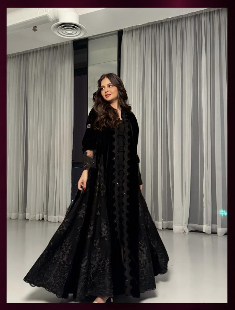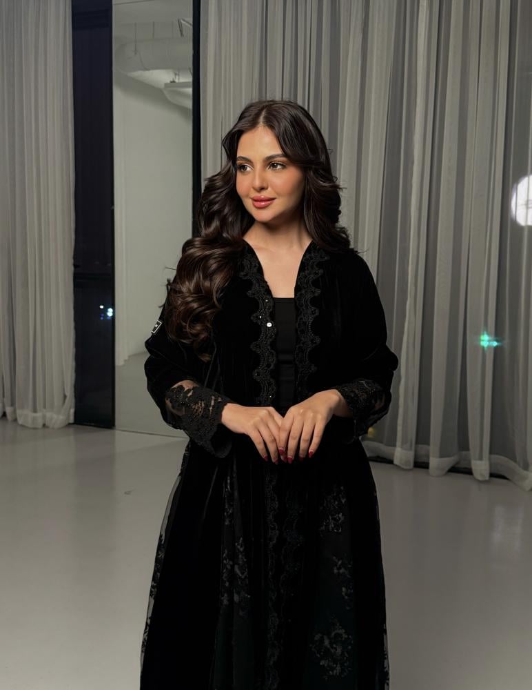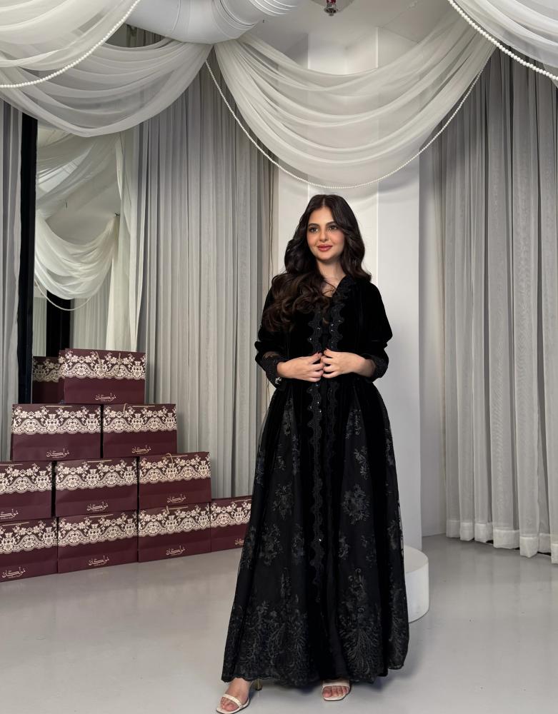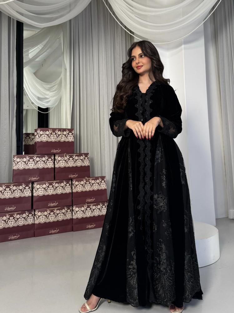 عبايتنا المخملية بتفاصيل دانتيل راقية تجمع بين الرقي والأنوثة..